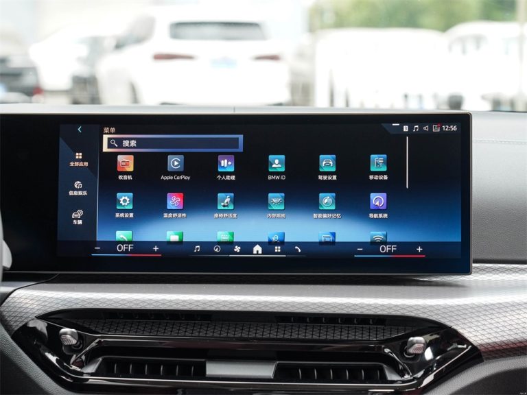 The full ambient lighting employs a sleek, strip‑style design. It offers 30 factory‑adjustable colors, achieved through six linear light strips that combine to create 11 distinct tonal themes. The lighting strips are integrated into the dashboard, door panels, and behind the front seatbacks.